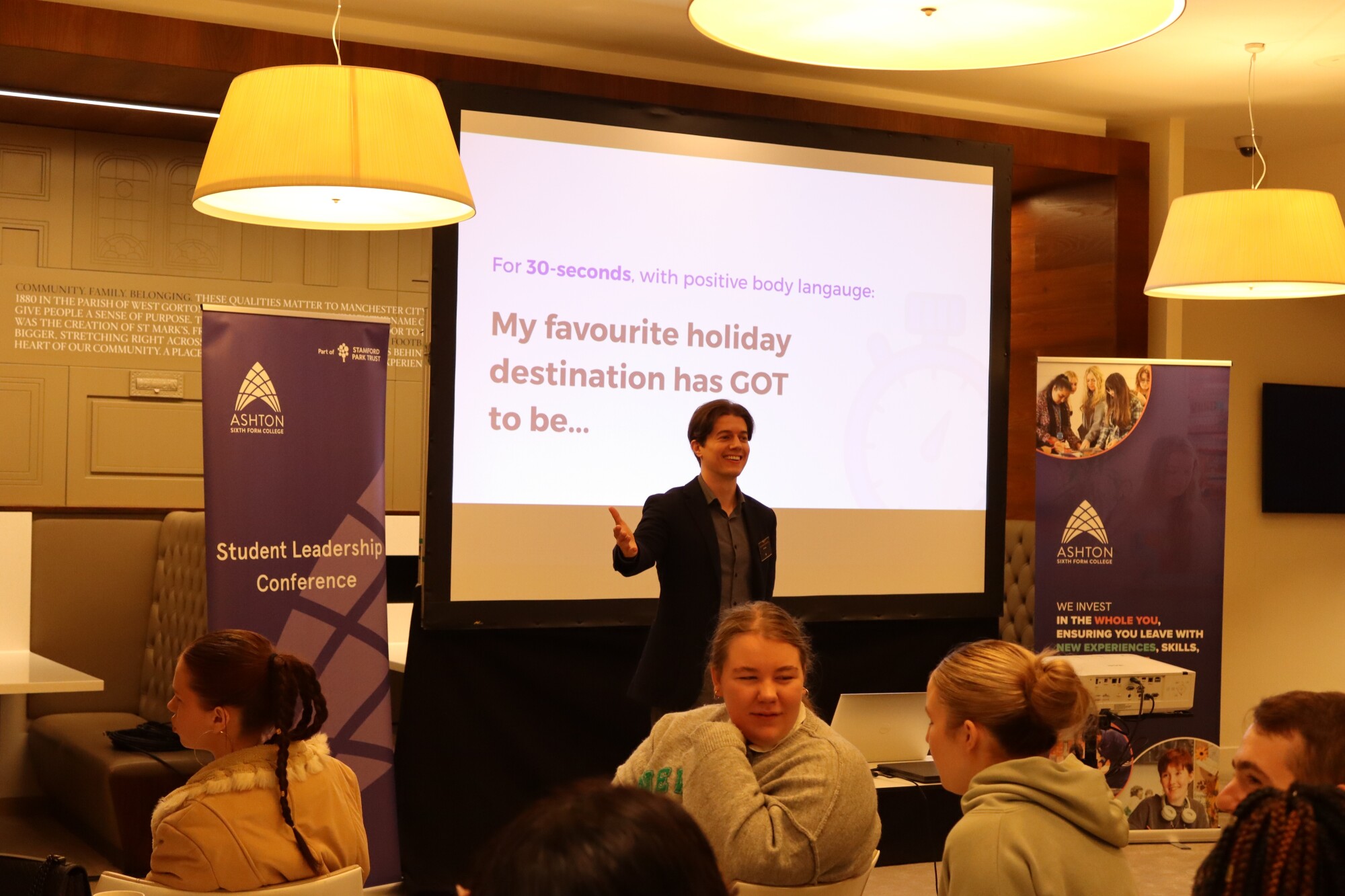 The conference was designed to help students connect with like-minded peers and further develop their leadership skills through engaging talks, workshops and activities. Together, they explored what it means to be a leader, from understanding the difference between confidence and enthusiasm, to discovering how leadership is built through connection and courage. The day opened with a warm and inspiring welcome from Centre Principal, Lisa Richards, who shared powerful reflections from her own leadership journey. As the driving force behind Ashton Sixth Form College, Lisa set an uplifting and motivating tone for the day, emphasising the importance of strong leadership and the value of transferable skills.